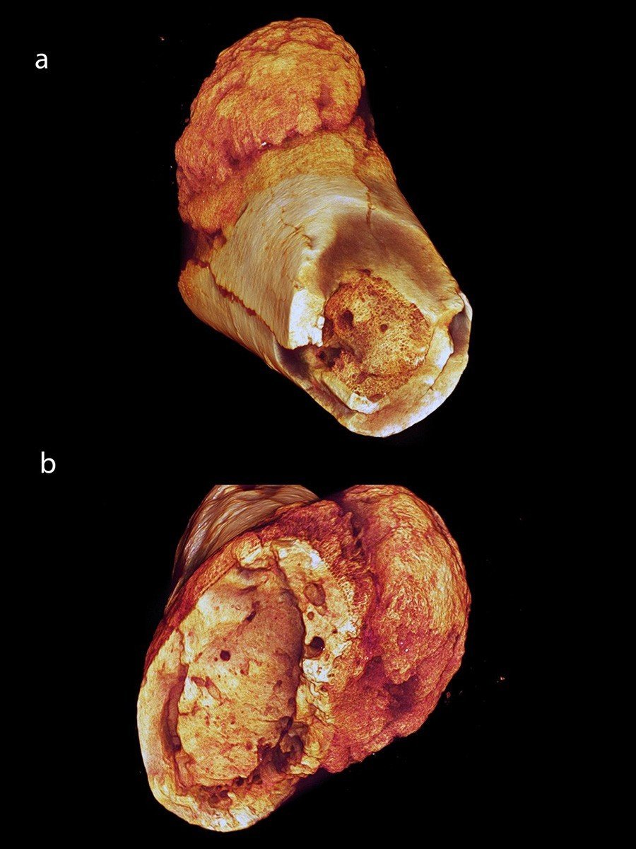 Sono tante le difficoltà che si incontrano quando si cerca di identificare un cancro in un reperto fossile, amplificate anche dal fatto che i frammenti disponibili sono spesso molto piccoli e che si sa poco o nulla sul “paziente”. Solo la tecnologia riesce a trovare risposta a molte delle domande dei “paleoncologi”: nel caso dell’osteosarcoma scoperto in Sud Africa, ad esempio, la diagnosi è stata possibile grazie all’utilizzo di una microtomografia computerizzata a raggi X in grado di generare immagini in due e in tre dimensioni del piccolo campione disponibile. Questa tecnica, unita al confronto con campioni moderni, ha permesso di scartare altre possibili diagnosi e di arrivare al risultato definitivo.