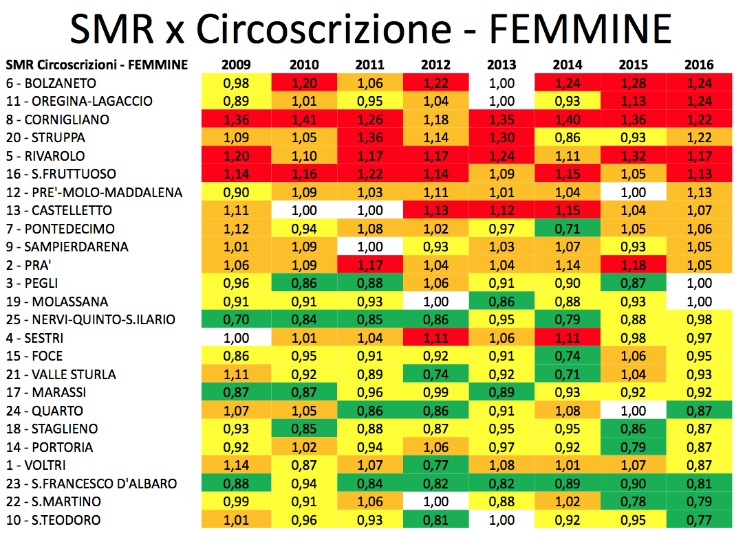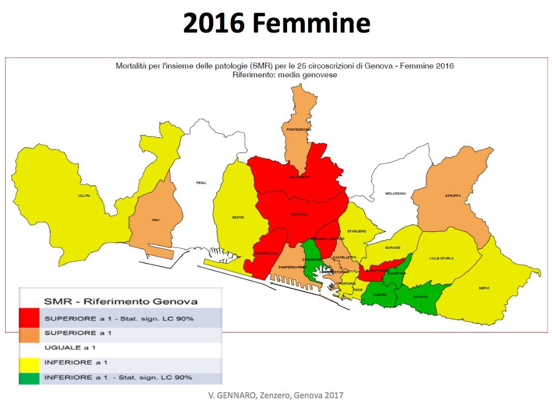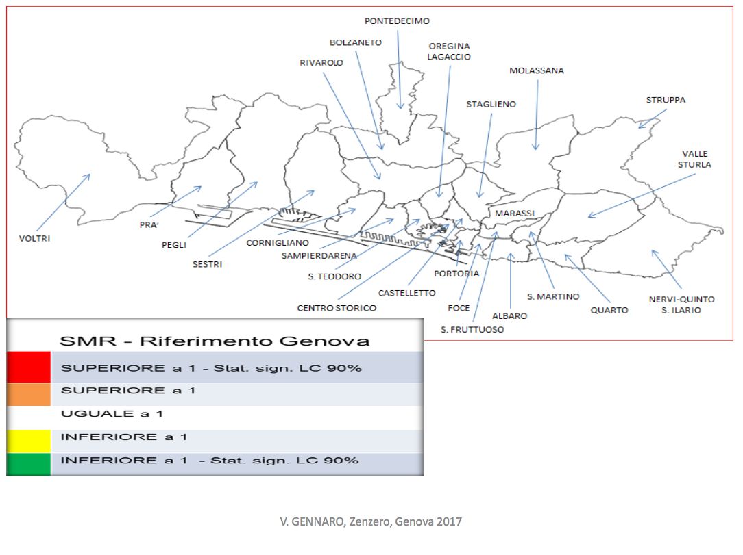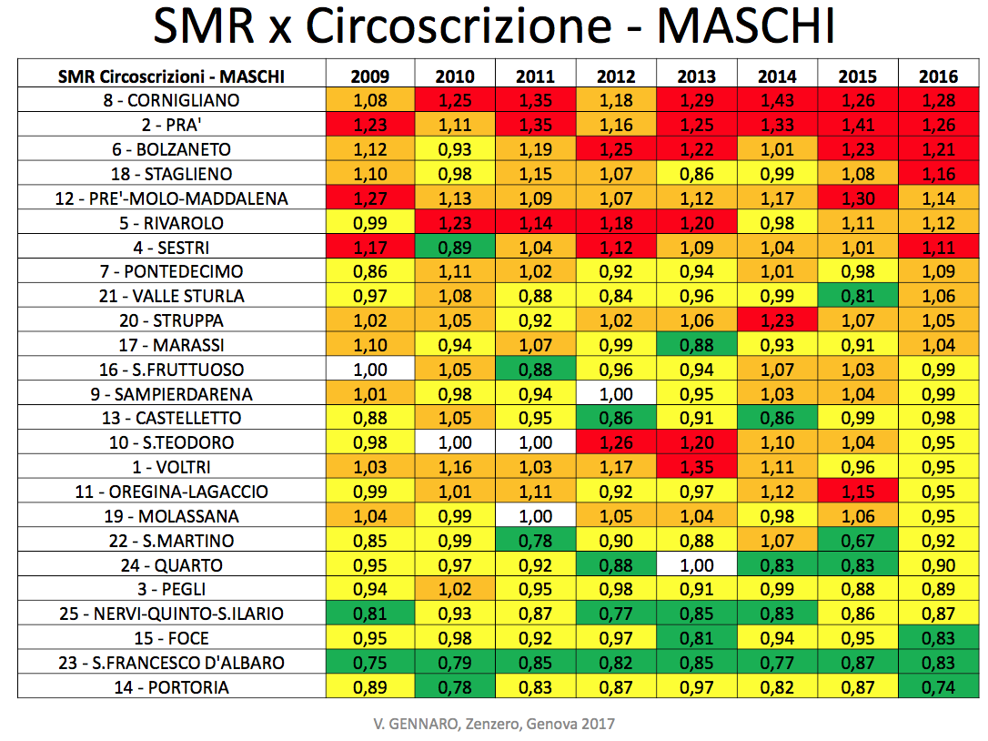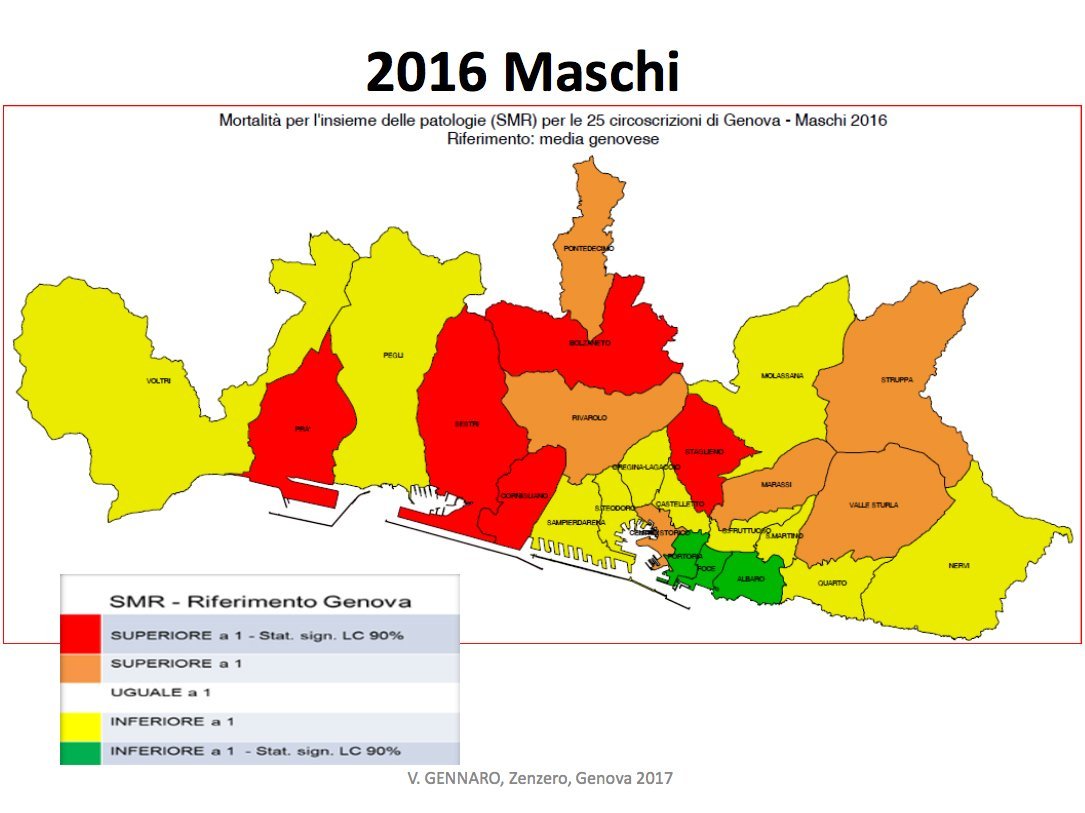 I dati epidemiologici sulle 25 circoscrizioni genovesi mostrano che in alcuni quartieri si vive peggio, e si vive peggio da troppo tempo: “Di fatto – spiega Gennaro – il dato di mortalità dimostra che c’è un eccesso di casi in certi quartieri e che, tendenzialmente, sono sempre gli stessi”.