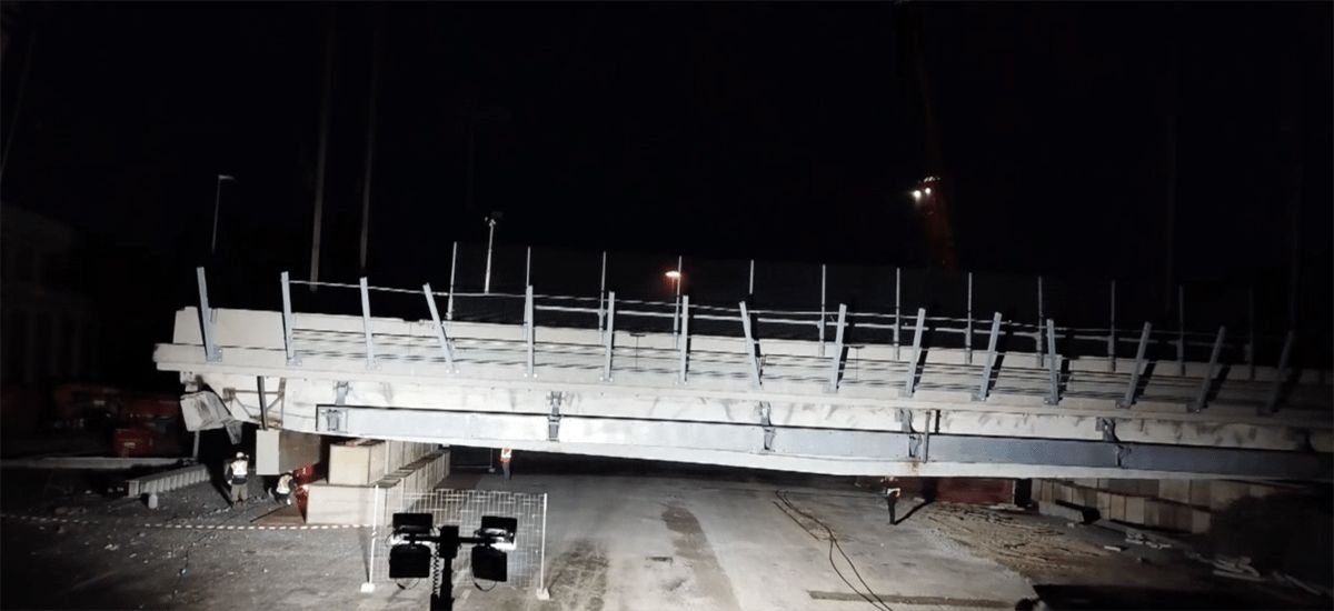 Nel frattempo, i tecnici procedono ad effettuare tutti i passaggi propedeutici per abbassare anche le altre 5 travi tampone del lato ovest che seguiranno lo stesso procedimento eseguito per la trave tampone 8: posizionamento dei contrappesi, degli strand jack, dei cavi, taglio al diamante.