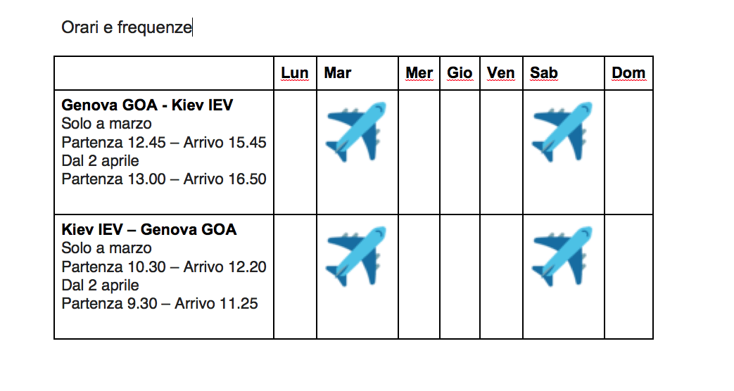 “Questo volo rappresenta una grande novità per l’aeroporto, che da oggi è collegato con la capitale ucraina: un mercato importante sia per il business, sia per il traffico incoming. – commenta Paolo Odone, Presidente dell’Aeroporto di Genova – Nel 2018 il numero di arrivi turistici dall’Ucraina è cresciuto di oltre il 16%, superando quota 50.000 in tutto il territorio regionale. Siamo anche fiduciosi che questo nuovo volo possa portare numerosi crocieristi da Kiev a Genova e Savona, dove potranno imbarcarsi sulle navi da crociera in partenza dai porti liguri”.