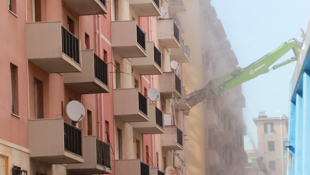Demolizione via Porro, bonifica dei palazzi non ancora completata. Tedeschi: “Sono parti degli edifici che verranno demolite in una seconda fase”