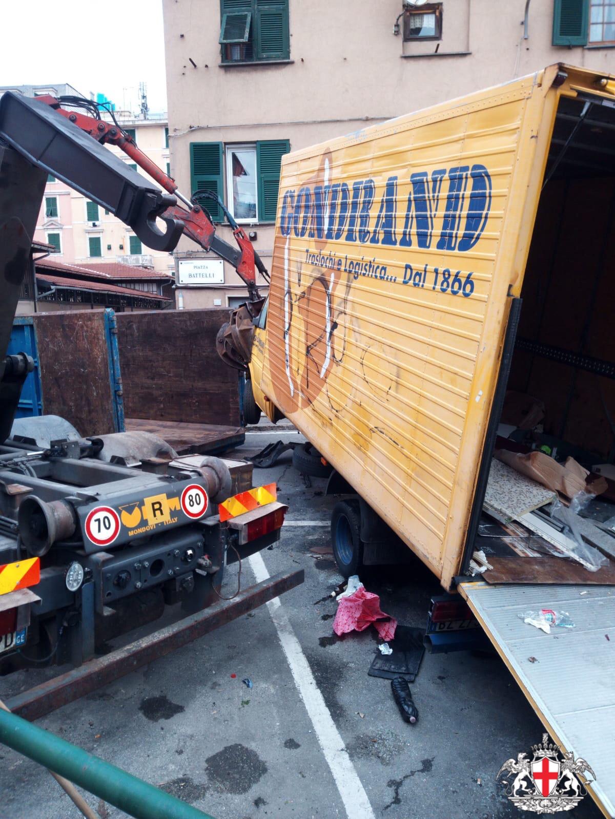 Cornigliano: rimosse le carcasse di 3 furgoni e 4 auto. A Genova sono oltre 600 i relitti portati via dall’inizio dell’anno