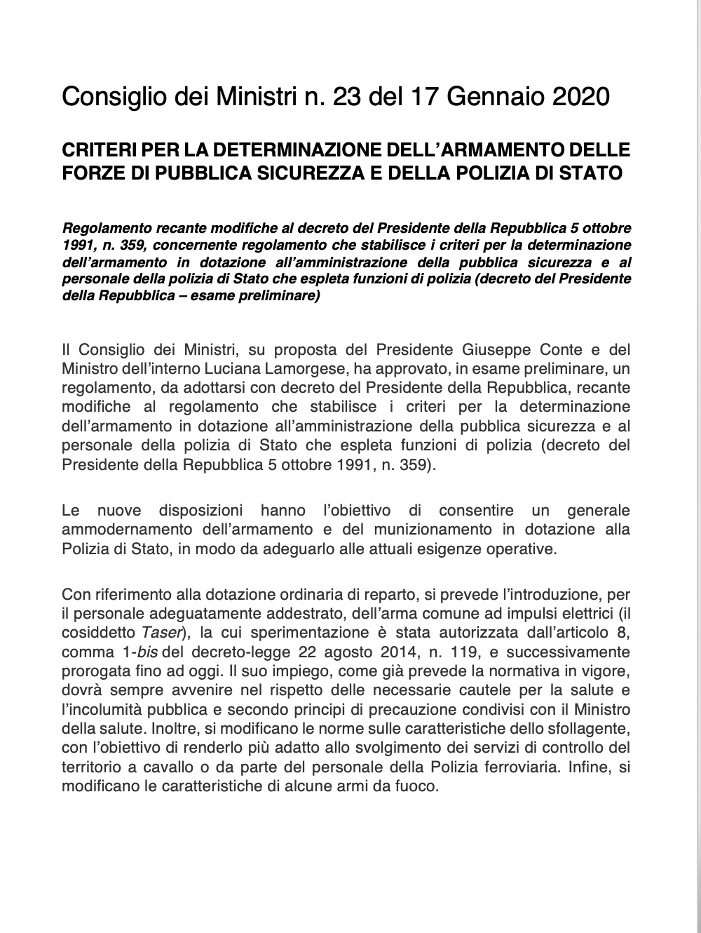 Taser CdM n.23 del 17 gennaio 2020 – clicca per ingrandire