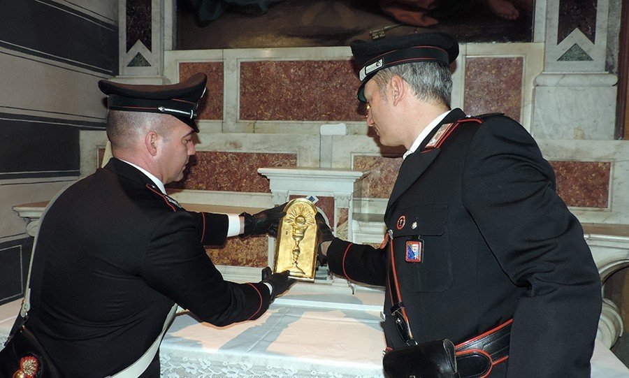Nel frattempo, dopo l’amara sorpresa, al Parrocco non è rimasto altro da fare che denunciare l’accaduto ai Carabinieri della Stazione di Lavagna. I militari hanno acquisito e visionato i filmati del furto e si sono messi sulle tracce del ladro. È stata un’indagine-lampo. La conoscenza del territorio ha permesso agli uomini dell’Arma di individuare e riconoscere senza ombra di dubbio l’autore del furto. L’uomo, un 57enne disoccupato  residente a La Spezia, ma gravitante sul territorio del comune di Lavagna, è stato rintracciato nelle ore seguenti. Convocato in caserma è stato messo davanti all’evidenza dei fatti e convinto dai militari che restituire quell’oggetto sacro sarebbe stato un gesto di buon senso. Ed è stato così che il ladro, scoperto e pentito, si è lasciato convincere e, venerdì mattina, dopo qualche ora dal colloquio avuto con i carabinieri, ha fatto ritorno in caserma consegnando la refurtiva trafugata. La preziosa porticina del tabernacolo è stata così restituita alla parrocchia e nei prossimi giorni potrà essere ricollocata al suo posto. Il ladro è stato denunciato in stato di libertà per il reato di furto aggravato.