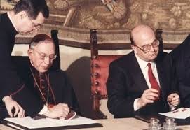 Nasceva quel giorno del 1929 la Città del Vaticano e il Concordato unitamente agli allegati fissarono il lato più importante, quello della convenzione finanziaria. In un volume intitolato “Diario della Conciliazione” Francesco Pacelli annotò meticolosamente i passi che portarono alla stesura e alla firma dei Patti Lateranensi. L’articolo 7 della Costituzione repubblicana accolse il patto e nell’anno 1984 il concordato fu rinnovato fra Bettino Craxi e Giovanni Paolo II. Nonostante l’articolo 7 fosse una norma provvisoria, ancora oggi quel patto consente profonde ingerenze ma anche flussi di danaro nelle casse di uno Stato a tutti gli effetti straniero rispetto all’Italia.