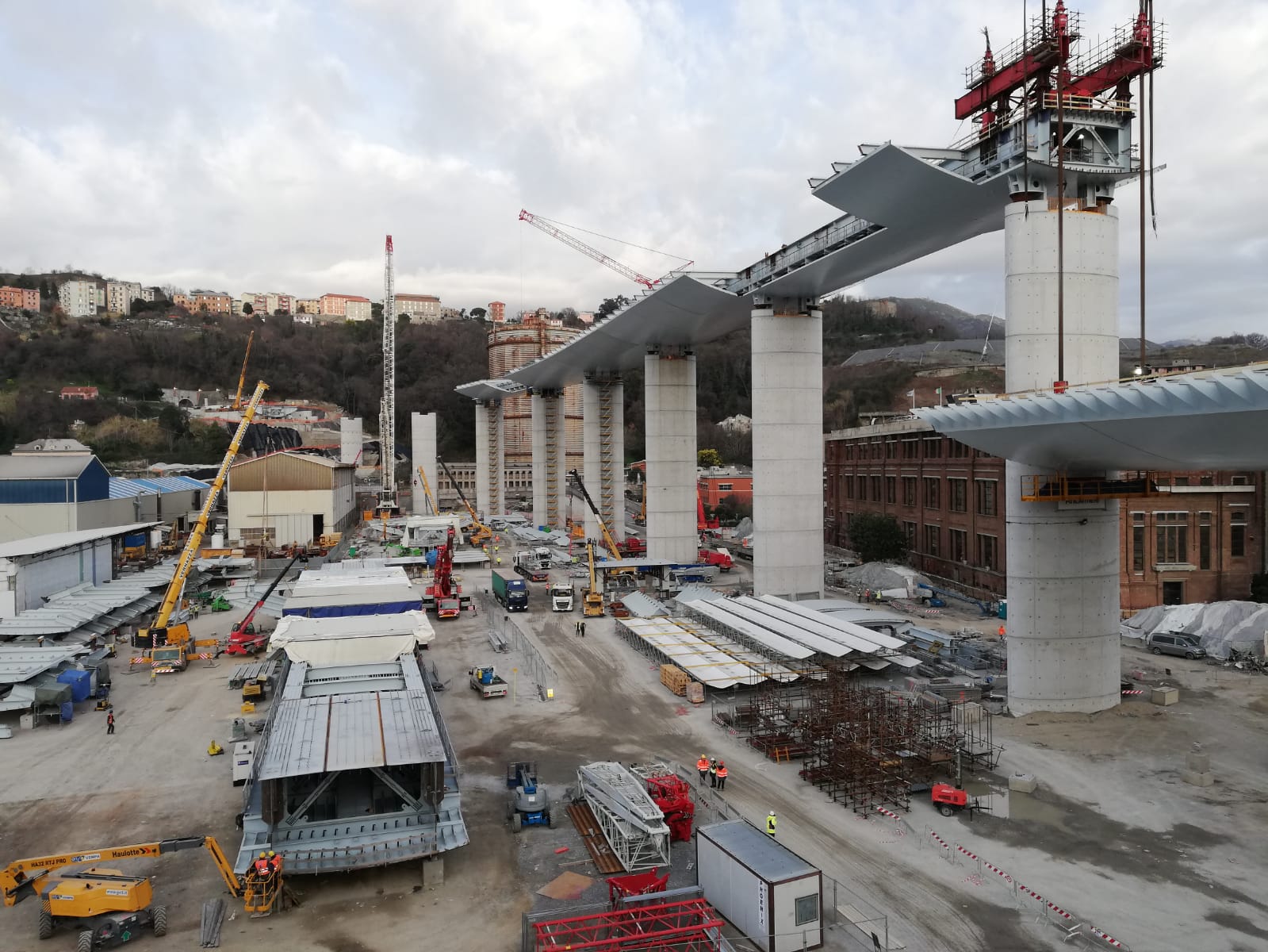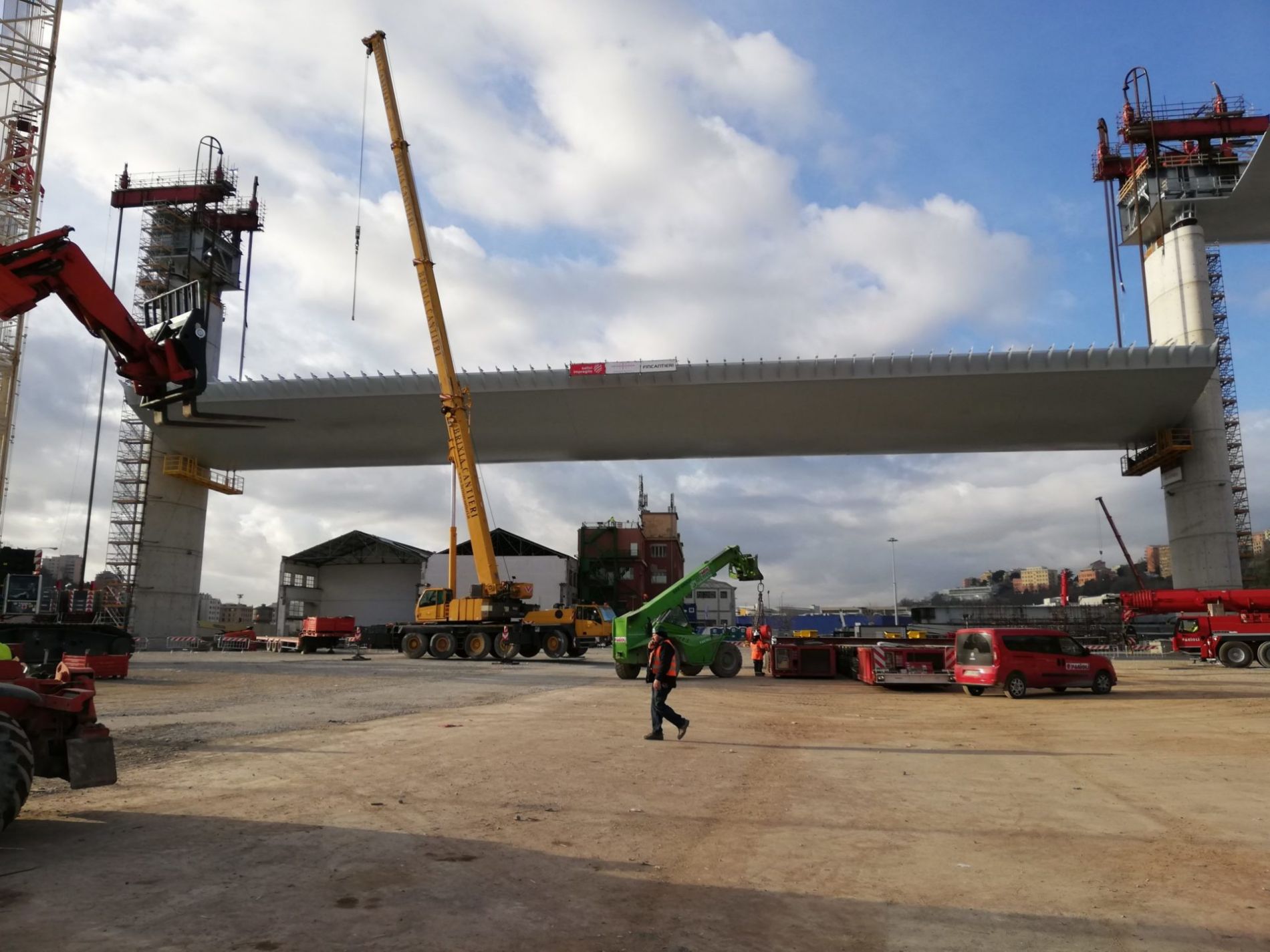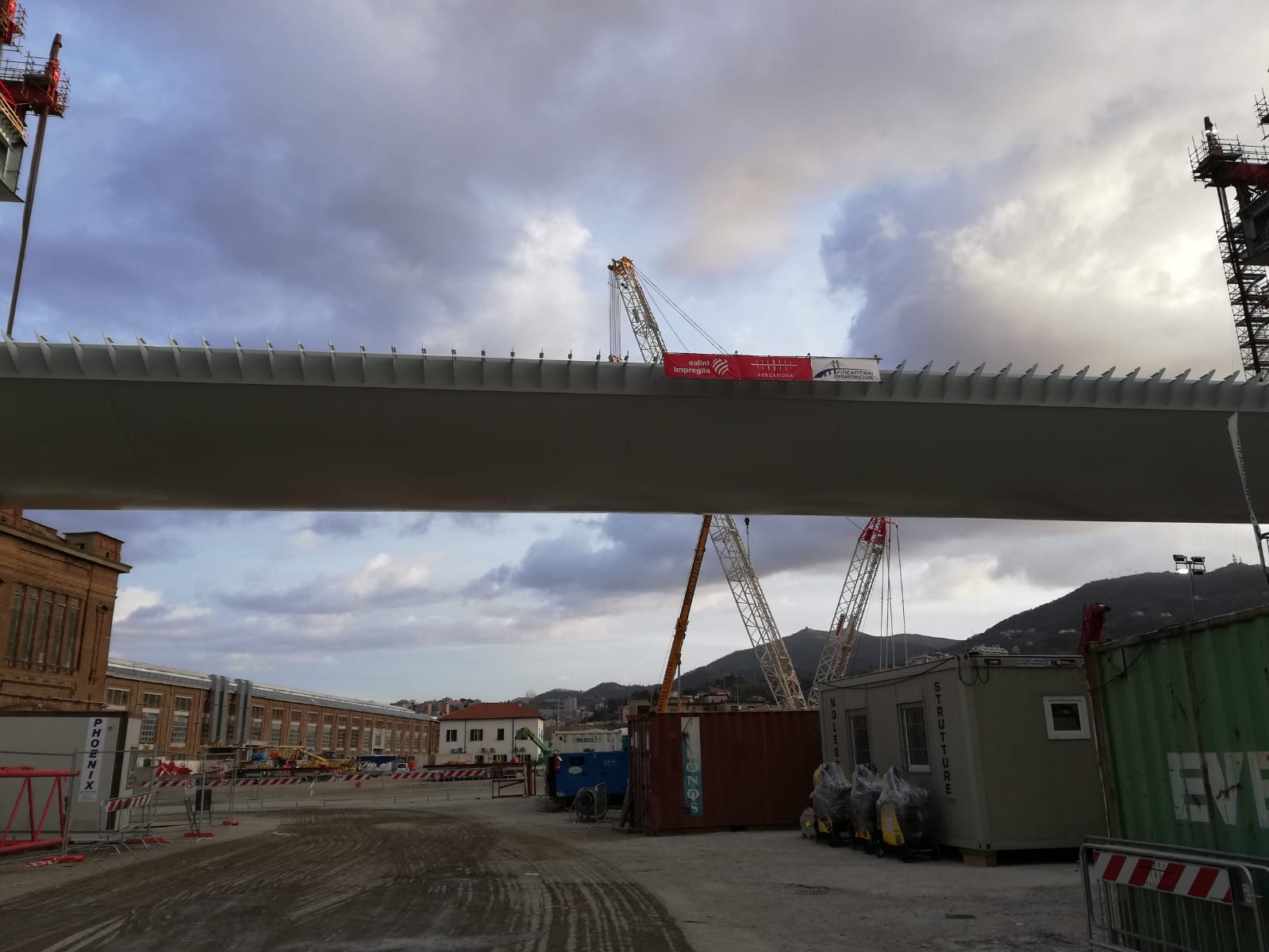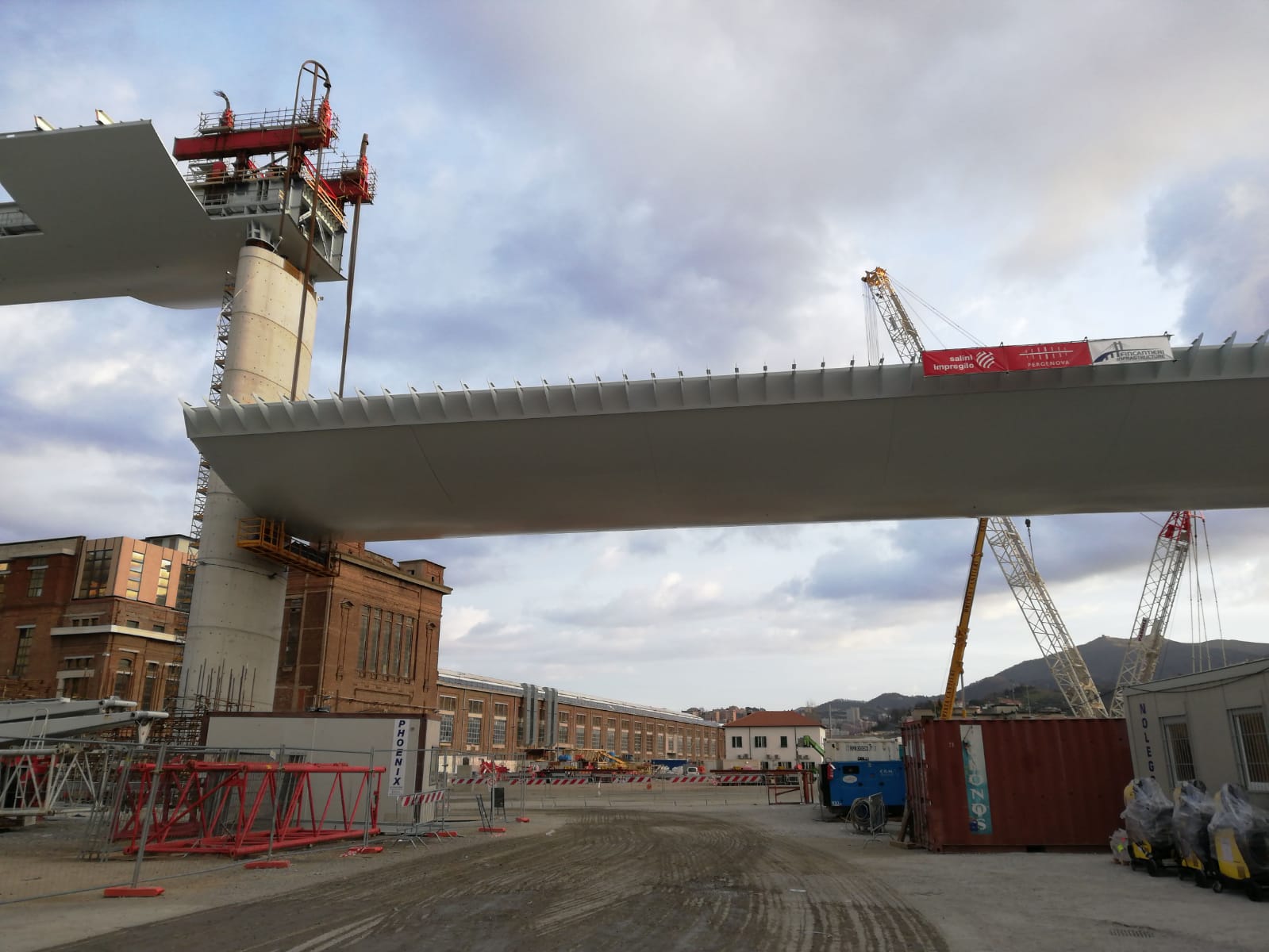 Genova – Si è concluso oggi, podo dopo le 14, il varo in quota della prima campata da 100 metri del nuovo viadotto Polcevera.