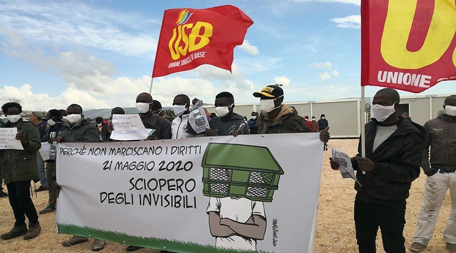 I BRACCIANTI AGRICOLI IRREGOLARI SCENDONO IN PIAZZA PER PROTESTARE CONTRO IL DECRETO RILANCIO