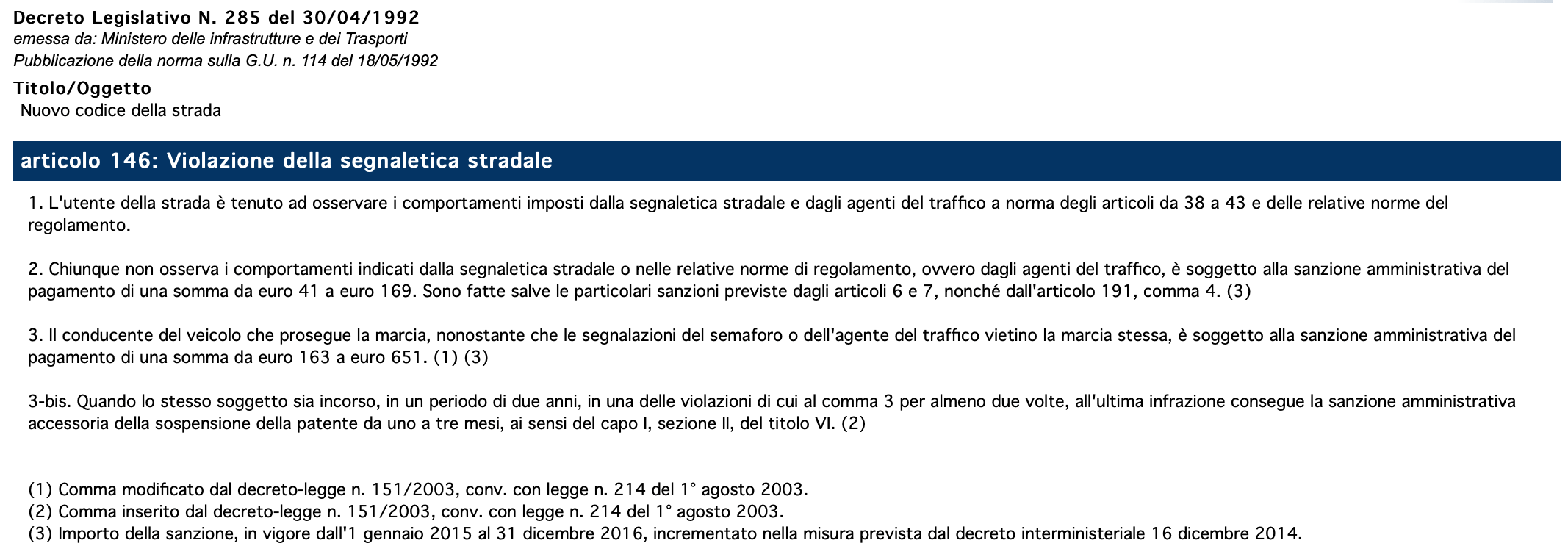 La Municipale genovese ricorda anche che chiunque violi la segnaletica stradale sarà punito in base all’art. 146 del Codice della Strada.