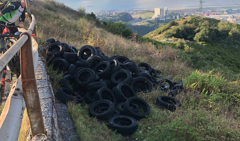 Trovata discarica abusiva di pneumatici lungo la strada per Scarpino
