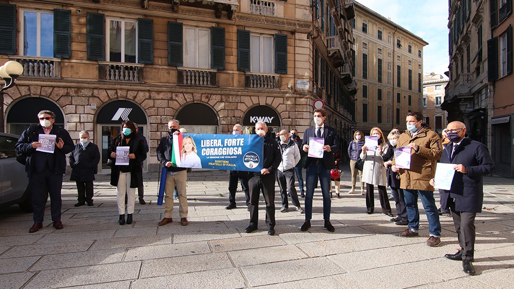 Scadenza INPS, la protesta di Fratelli D’Italia a Genova, Oppicelli: “Aiuti tangibili e burocrazia semplificata per le aziende”