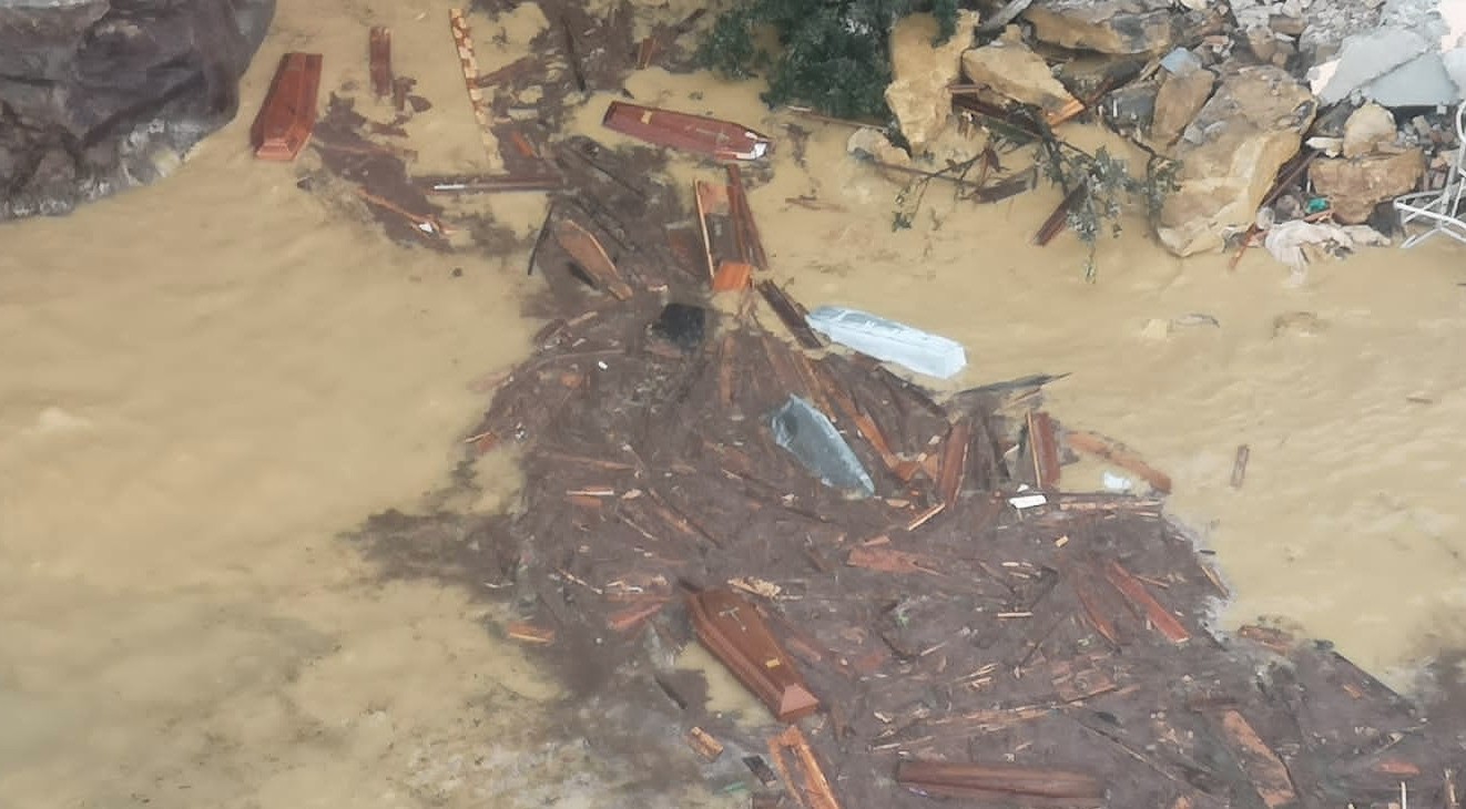 Frana il cimitero di Camogli e le bare finiscono in mare