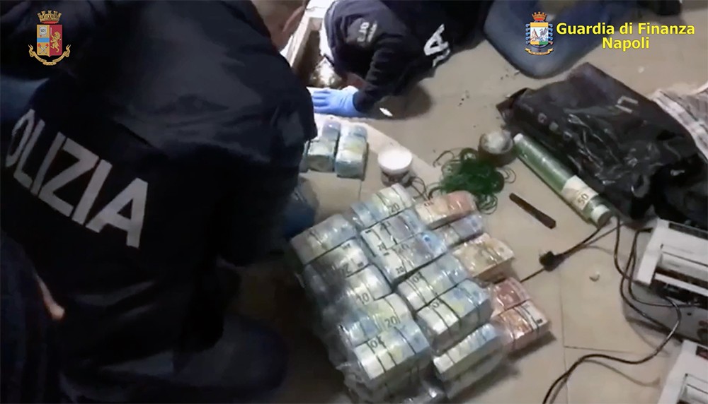 Infine, anche la perquisizione dell’abitazione di un settimo componente, effettuata con l’ausilio dei Vigili del Fuoco di Napoli, ha portato alla luce un sistema “a scomparsa” celato sotto il pavimento del piano interrato, che dava accesso a una botola dove sono stati rinvenuti e sequestrati 62 involucri in cellophane pieni di banconote di vario taglio, per una somma totale di 650.690 euro, oltre a 2 macchine “conta-banconote”.