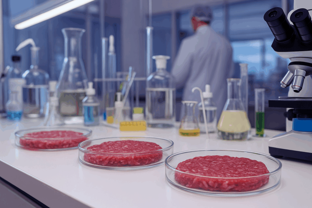 Dalle alghe passiamo alla carne coltivata in laboratorio, l’innovazione che più divide l’opinione pubblica. Ottenuta da cellule animali senza allevamento né macellazione, promette di ridurre le emissioni di gas serra fino al 96%, il consumo d’acqua dell’82% e l’uso del suolo del 99% rispetto alla carne tradizionale. (11)